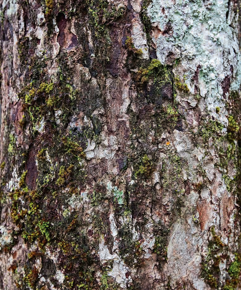 百山祖冷杉斑驳的树皮附满苔藓和地衣。(钟鑫摄)